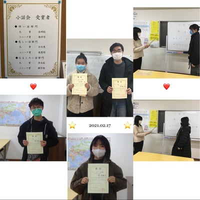 2021/02/17 小話会 [2021]先日学校内で小話会を行いました! 素晴らしいお話を聞かせてありがとう〜[鼓掌] そして、[小红花]受賞者の皆さん、おめでとう🎊 tagPlaceholderカテゴリ: